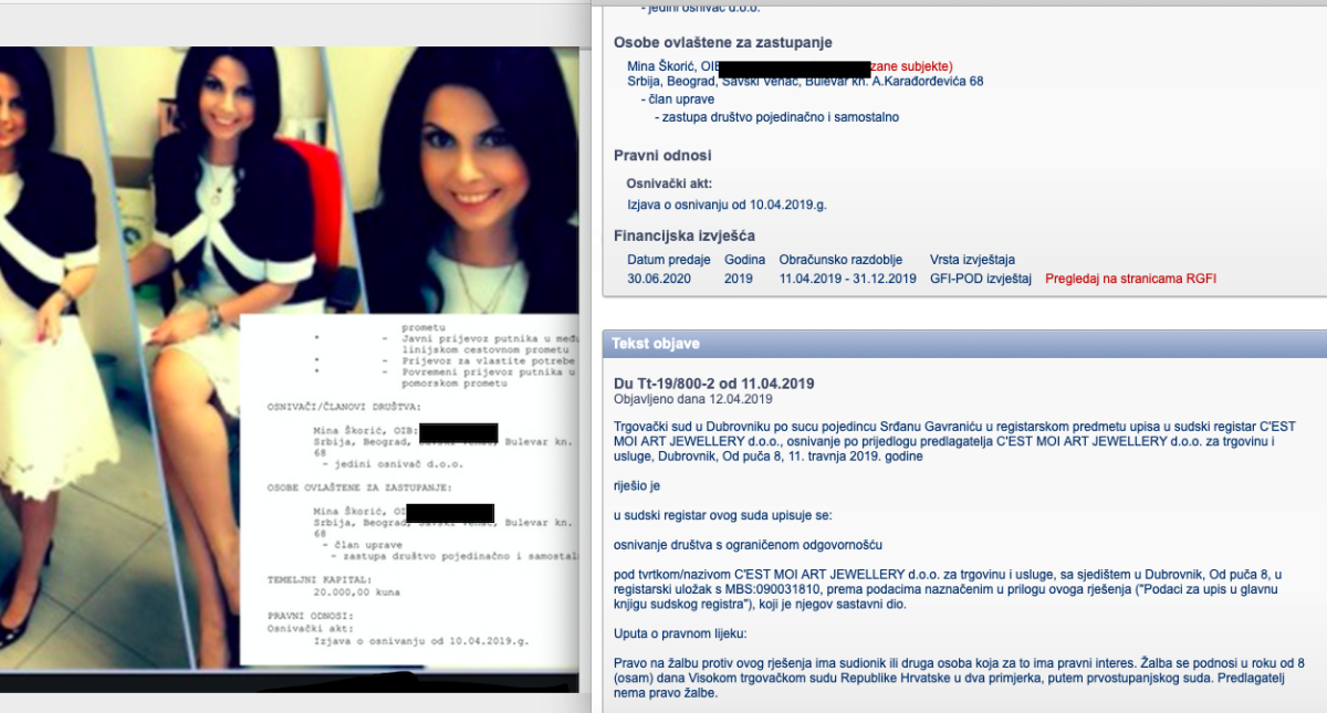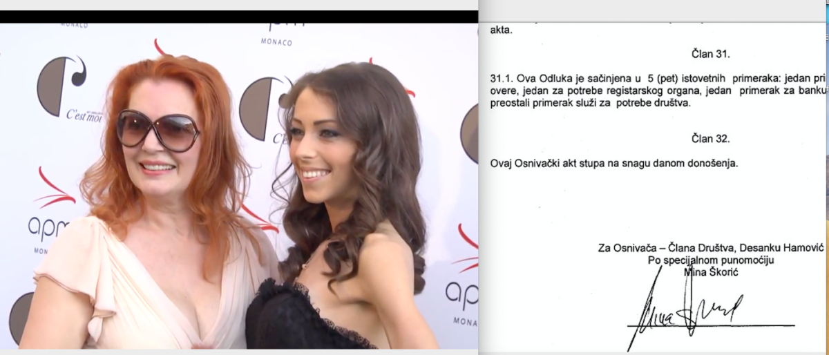 Na jednoj slici pokraj nje stoji elegantna gospođa koja je vjerojatno Desanka Desa Hamović. Mina Škorić i sin Vuka Hamovića Miloš povezani su preko LinkedIna a naš je dojam kako je direktorica draguljarnice ujedno blisko povezana s Hamovićevim sinom Milošem. Draguljarnica je u Srbiji prvo prodavala nakit zlatarne iz Monaca a potom je lansirala i vlastitu liniju. Inače, u kontekstu Hamovićevih poslova u Srbiji spominjao se i Milan Škorić. Tako je u srbijanskim medijima objavljeno kako je