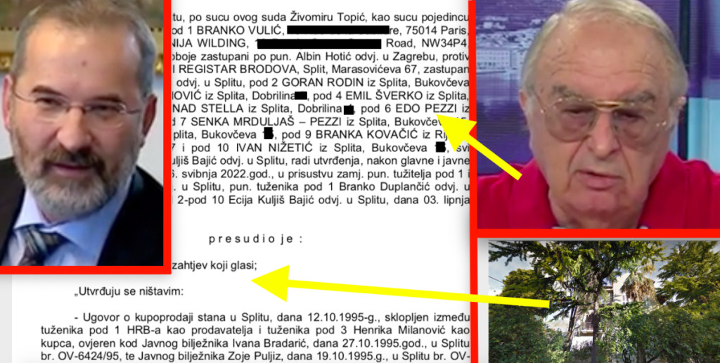 Ugovora o kupoprodaji stana u Splitu, dana 03. veljače 1993, sklopljenog između tuženika pod 1 kao prodavatelja i Blaženke Kirchmajer kao kupca (pravni prednik tužene pod 9), ovjerenog kod Općinskog sekretarijata za opću upravu dana 15. veljače 1993., te Ugovora o kupoprodaji stana u Rijeci, bez datuma, sklopljenog između tuženika pod 9 Branke Kovačić kao prodavatelja i tuženika pod 10 Ivana Nižetić kao kupca, ovjerenog kod Javnog bilježnik Darka Petravića u Rijeci, dana 03. rujna 1997., pod br. Ov-11531/97. Ukinuta je pobijana presuda ovog suda, u dijelu kojim je odlučeno o zahtjevu tužitelja pod 1 i pod 2 u odnosu na utvrđenje ništavosti ugovora o kupoprodaji sklopljenih između tuženika pod 1, i tuženika pod 3, pod 4, pod 5, pod 6 i pod 7, kao i u dijelu kojim je odlučeno o troškovima postupka, te u tom dijelu predmet vraćen ovom sudu na ponovno suđenje' - piše u dijelu presude koja ima već 69 stranica. No, ni ova presuda nije konačna ni pravomoćna. Protiv iste nezadovoljna stranka ima pravo izjaviti žalbu u roku od 15 dana Županijskom sudu u Splitu. Tko zna do kada će se ova sudska trakavica nastaviti i hoće li na ovom slučaju 'efikasno' hrvatsko pravosuđe još jednom demonstrirati svu svoju neefikasnost i sporost.