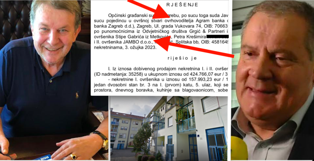 Ona je odlučivala u ovršnoj stvari ovrhovoditelja Agram banka d.d. (ranije Kreditna banka Zagreb d.d.), koju su zastupali punomoćnici iz Odvjetničkog društva Grgić & Partneri iz Zagreba. To i ne čudi budući da je Agram banka dio carstva hercegovačkog tajkuna sa zagrebačkom adresom Dubravka Grgića. Ovrha se vodi protiv ovršenika Stipe Gabrića iz Metkovića te njegove tvrtke Jambo d.o.o. iz Metkovića. Sutkinja je tako 3. ožujka 2023. riješila da se iz iznosa dobivenog prodajom nekretnina ovršenika pred Agencijom namiri dio duga u ukupnom iznosu od 424.766,07 eur / 3.200.399,95 kn. Ovrha se ticala više zagrebačkih nekretnina Stipe Gabrića Jambe kao i njegove tvrtke Jambo d.o.o. Na prvom mjestu to je dvosobni stan sveukupne površine 64,57 m2 vlasništvo Stipe Gabrića a koji se nalazi u zgradi u Zagrebu, Ulica Predraga Heruca. Uz taj stan se navodi iznos od 157.993,23 eur / 1.190.400,00 kn.