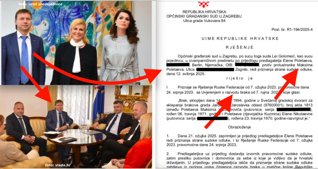 To je vidljivo iz ruskog dokumenta koji je objavljen na sudskoj oglasnoj ploči. Naime, tom moćnom Rusu netom je Općinski građanski sud u Zagrebu objavio Rješenje koje je donijela sutkinja tog suda Lea Golomeić. U njemu piše kako je taj sud postupao po prijedlogu Elene Poletajeve. Uz njeno ime upisana je adresa u Berlinu, u Njemačkoj. U Rješenju je Maksim Poletajev označen kao protustranka a uz njegovo je ime naveden luksuzni stambeni VMD-ov kompleks na križanju Heinzelove i Darwinove ulice u Zagrebu u kojem dva 4-sobna stana i 4 garaže posjeduje hrvatski nogometni izbornik Zlatko Dalić. U istom kompleksu luksuzne stanove posjeduju i brojni bogati i poznati Hrvati ali i oni iz susjedne BiH, preciznije Hercegovine.