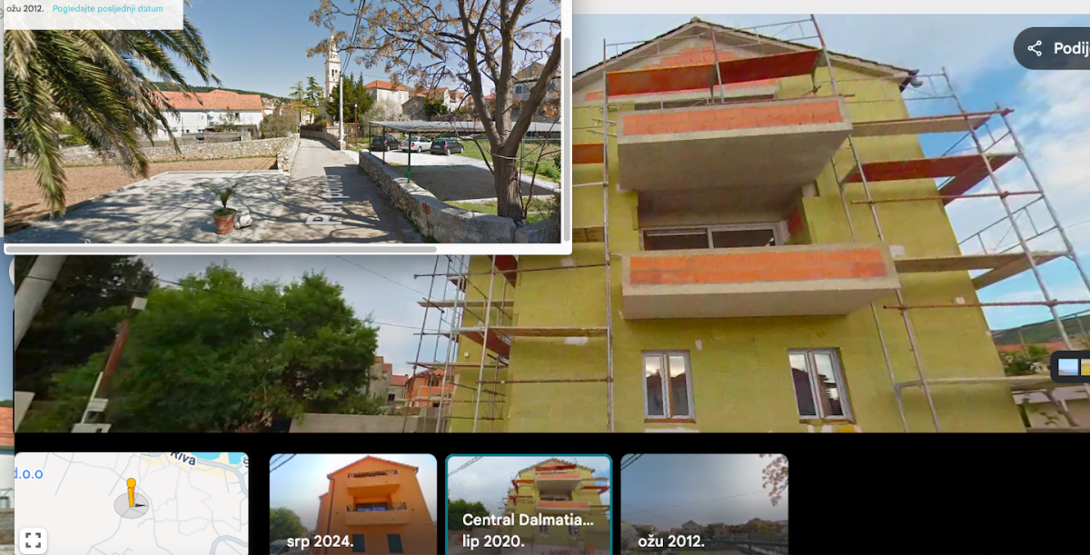 Vidjeli smo kako se nije dogodilo ama baš ništa a proteklo je više od godinu dana. I dalje je u imovinskoj kartici Ive Milatića, kartici koja demonstrira kako se radi o dužnosniku - bogatašu, u što se mogu svi uvjeriti jednostavnim klikom OVDJE, i dalje upisano gradilište u Jelsi površine 472 m2. No, kada se ta čestica koja je uknjižena 1/1 na Ivu Milatića pregleda na katastru ili pak preko Ortofoto vidi se predimenzionirani objekt na toj građevinskoj parceli. No, iako je tu nekretninu Milatić Povjerenstvu prijavio kao građevinsku, ista je u zemljišnim knjigama upisana kao gradilište. No, Milatić je ponovno zatražio novi dokument kako bi uredio pravni status te nekretnine koja već odavno nije gradilište. Naime, aplikacija Google karte omogućila nam je uvid u ranije snimke te lokacije pa je tako tamo vidljivo kako je već 2020. Milatićeva građevina već bila potpuno izgrađena, stajale su skele i tada je rađena fasada.