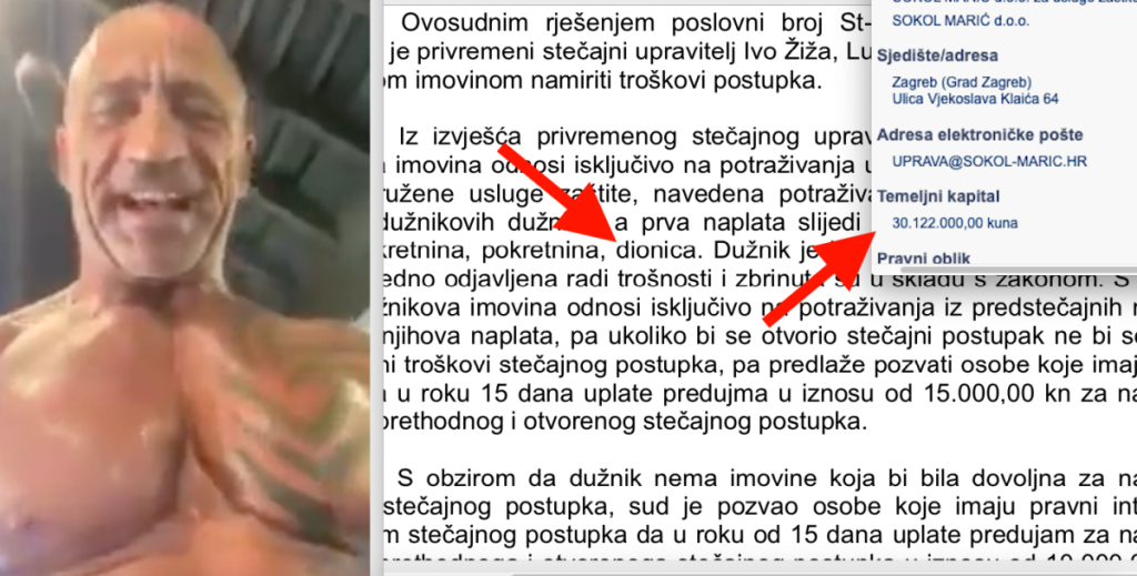 Iz njegovog izvješća proizlazi kako imovinu Sokol Marića čine potraživanja u ukupnom iznosu od 97.087,08 kn, za pružene usluge zaštite, a prva naplata slijedi tek 31. prosinca 2021. 'Dužnik nema nekretnina, pokretnina, dionica. Dužnik je bio vlasnik više motornih vozila, ali su sva uredno odjavljena radi trošnosti i zbrinuta su u skladu sa zakonom. S obzirom da se dužnikova imovina odnosi isključivo na potraživanja iz predstečajnih nagodbi, upitna je njihova naplata, pa ukoliko bi se otvorio stečajni postupak ne bi se uspjeli podmiriti ni troškovi stečajnog postupka, pa predlaže pozvati osobe koje imaju pravni interes da u roku 15 dana uplate predujma u iznosu od 15.000 kn za namirenje troškova prethodnog i otvorenog stečajnog postupka' - piše stečajni upravitelj Žiža.