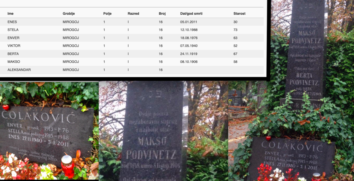 A sa mirogojske nadgrobne ploče možemo saznati kako prvi red do mirogojskih arkada u zajedničkoj grobnici počivaju pripadnici obitelji Podvinec: Aleksandar, Makso, Berta i Viktor te obitelji Čolaković: Enver koji je umro u dobi 63 godina, Stella koja je umrla 1988. u dobi od 73 godine te Enes koji je preminuo 2011. u dobi od 30 godina. No, nadgrobna ploča nam otkriva i kako su Podvineci kroatizirali svoje prezime, oni su se zapravo prezivali Podvinetz a autentično Kohn. Stoga ne čudi da je grob slavnog pradjeda mladog pjesnika Andreja na židovskom dijelu Mirogoja i da su ukopani sa znakom koji to potvrđuje. Stoga je posve razumljivo da je mladi Andrej napisao pjesmu koja je omiljena njegovoj sestri a koja govori kako su svi ljudi jednaki neovisno o naciji i vjeri. Jer kako bi dječak sa tako zanimljovom nacionalnom i vjerskom povijesti vlastite obitelji i mogao drugačije interpretirati svjet i okružje iz kojeg potječe. Možda su njegove pjesme putokaz i u ovom krvavom vremenu ratnih sukoba kako u Ukrajini tako i Izraelu i Gazi da se nekima glave ohlade i da se prisjete kako su možda i sami na ovaj svijet došli kao ljudi miješane krvi, u smislu da je njihovo porijeklo obilježeno elementima nacionalnog i vjerskog 'melting pota'.