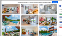 Kat: master spavaći dio sa garderobom i kupaonicom te izlazom na terasu te prostran dječji spavaći apartman koji je moguće podijeliti na 2 spavaće sobe i kupaonicu. Iz vile se pruža prekrasan pogled na zelenilo. Izuzetno mirna lokacija, u blizini škole i vrtića te javnog prijevoza. Uvučena od glavne ceste što pruža potpunu privatnost. Ostale informacije na upit.'. No, na stranicama te poznate zagrebačke nekretninske agencije nalazi se stara fotogalerija pa su tako potencijalni unajmitelji uskraćeni za fotografije vile kako sada izgleda. Naime, u Eurovillinom oglasu dostupne su slike uređenih luksuznih kupaonica ali ne i salona, spavaćih soba, kuhinje, blagovaone, garderobne sobe i ostalih prostorija. No, sve je to moguće pronaći na stranicama Bookinga. Tamo smo pronašli bogatu foto galeriju od čak 98 slika.
