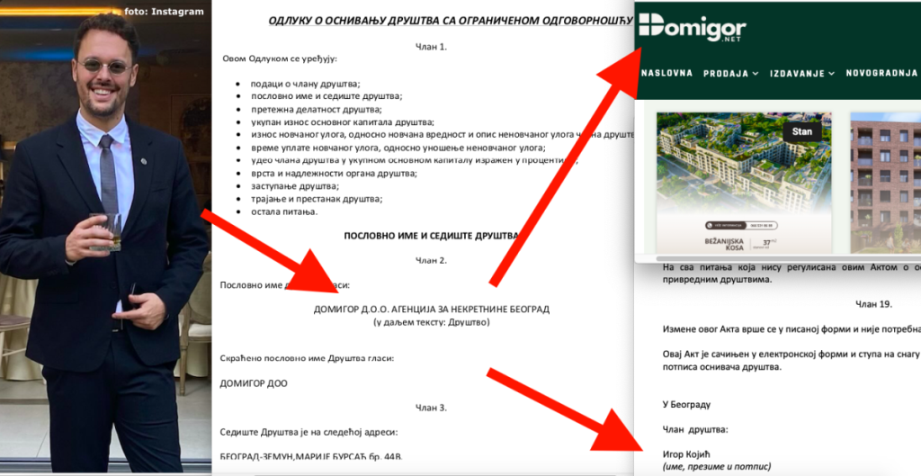 Naime, on je 23. svibnja u Beogradu, odnosno Zemunu, osnovao tvrtku Domigor, dakle spojio je termin koji se više koristi u Hrvatskoj nego u Srbiji gdje je uobičajeni izraz kuća ili stan, te svoje osobno ime, i tako je nastao naziv njegove kompanije. Kojić je zapravo osnovao agenciju za nekretnine koja ima i web stranicu te profile na društvenim mrežama što je uostalom istaknuo i na svom Instagram profilu. Kada se pogleda web stranica tvrtker Domigor u kojoj je Igor Kojić jedini osnivač i direktor, onda je vidljivo kako imaju brojne nekretnine diljem srbijanske metropole ali i čitave Srbije, no da imaju i ponudu nekretnina iz Hrvatske.