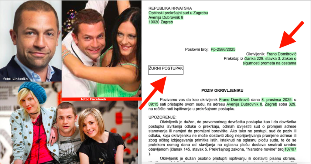 Bivša TV zvijezda pozvan je na ročište koje je zakazano za 8. prosinca 2025. u jutarjim satima u zgradi tog suda i to 'radi ispitivanja u prekršajnom postupku.'. Izdano mu je i UPOZORENJE sljedećeg sadržaja: 'Okrivljenik je dužan, do pravomoćnog dovršetka postupka kao i do dovršetka postupka izvršenja odluke o prekršaju, odmah izvijestiti sud o promjeni adrese stanovanja ili namjeri da promijeni boravište. Ako tako ne postupi, sud će poziv ili odluku, koju okrivljeniku ne može dostaviti zbog neprijavljivanja promjene adrese ili zbog očitog izbjegavanja primitka istih, istaknuti na oglasnu ploču suda, te će se protekom osmog dana od stavljanja na oglasnu ploču dostava smatrati uredno obavljenom (članak 145. stavak 5. Prekršajnog zakona, "Narodne novine" broj107/07 ).