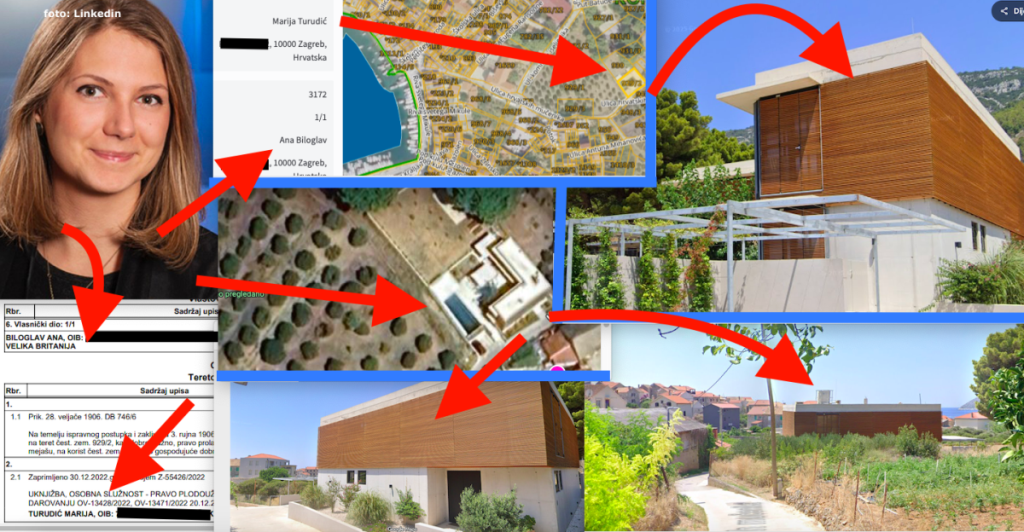Sa studija psihologije tada mlada Zagrepčanka Ana Biloglav prebacila se na studij prava a rezultat je njezina sadašnja pozicija odvjetnice u prestižnom londonskom uredu gdje je zadužena za financijska savjetovanja klijenata. No, Biloglav nije prekinula spone s domovinom. Izgradila je velebnu vilu s bazenom u Komiži na Visu. Inače, parcelu je sestra Ivana Turudića uknjižila krajem prosinca 2017. godine kupnjom od jedne splitske logopedinje te jedne splitske profesorice. Potom je 30 prosinca 2022. Marija Turudić darovala tu nekretninu kćeri Ani Biloglav ali za sebe je zadržala pravo plodouživanja. Na parceli je izgrađena moderna katnica s bazenom te je uređen eksterijer. Zanimljivo je kako je kat obložen drvenim oblogama što taj objekt izdvaja od susjednih kamenih ili betonskih katnica.
