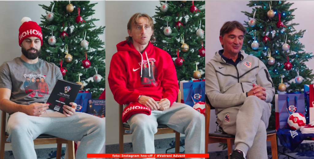 Tome nas podučava i crkva, o tome govore svećenici, vjernici, ali mnogi to zaborave kraj blještavih božićnih dekoracija, kraj potrošačke jurnjave, u svijetu konzumerizma koji je algoritamski naštiman da se svima otpuste hormoni sreće ne kad prolaze iskustva istinskih unutarnjih doživljaja već kad njihovim venama prokola malo alkohola, glasne muzike, šušura, ludih ritmova, blještavila i kada dođe ono uvjerenje kako je najvažnije biti na nekom mjestu gdje će te drugi vidjeti a koji si ne mogu priuštiti tu poziciju. Gvardiol je zabljesnuo u Božićnom izdanju u opisanom videu s crvenom kapicom Djeda Mraza s HOHOHO natpisom, kraj ukrašenog bora. Ove godine Hrvatski nogometni savez imao je sjajnu kampanju s Adventskim kalendarom a Joškov video se otvorio 22. prosinca. Dan poslije njega, 23. prosinca, otvorio se adventski video s našim kapetanom Lukom Modrićem - LINK. Modrić je rekao kako mu je Božić najdraži. Kapetan se prisjetio i darova, prvo na pamet mu je pala čokoladica, ali je istaknuo kako mu je najdraže bilo dobiti loptu.