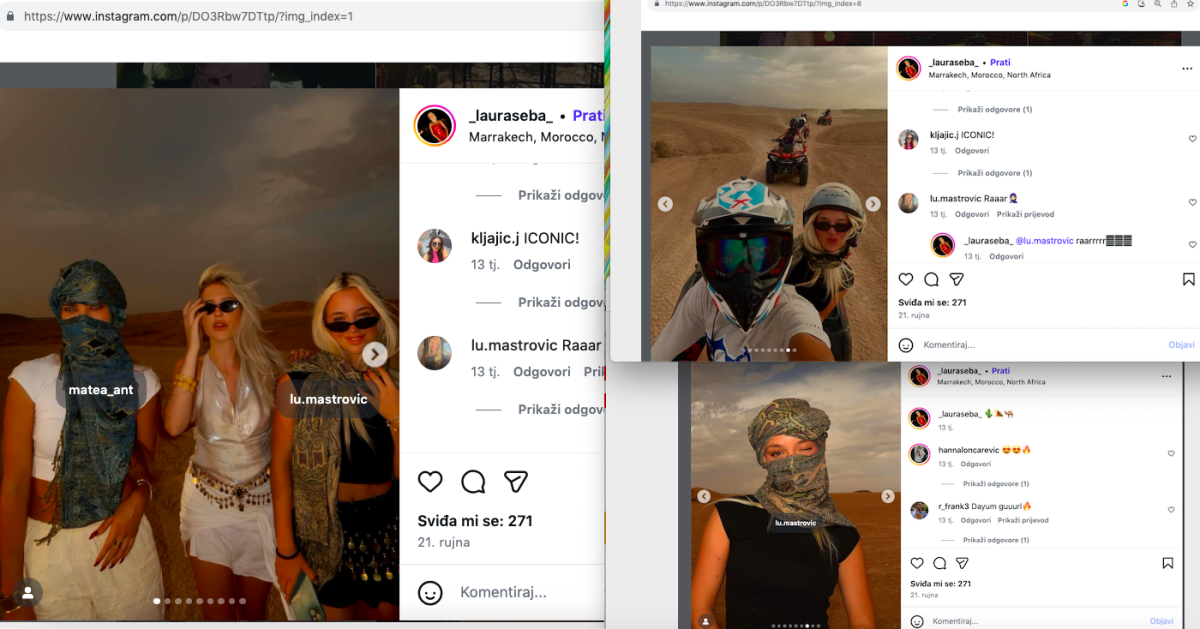 Osim što se pojavio interes za izabranicu Joška Gvardiola i njezin život mnogi na društvenim mrežama raspravljaju o tome s kim se druži Lu Mastrović. Tako je objavljeno u jednom komentaru kako je prijateljica atraktivne plavuše Laure Šeba. Radi se o studentici psihologije iz Zagreba koja ima više pratitelja na društvenim mrežama od same Lu. Njezin Instagram profil nije privatni kao od Gvardiolove izabranice pa smo tamo pronašli neke njihove zajedničke slike kako s puta u Marakeš u Maroku tako i s nekih partija. Na slikama je Laura Šeba 'tagala' Lu Mastrović a ona je te objave komentirala raznim emotikonima. Iz objava prijateljice Lu Mastrović te brojnim TikTok videima vidljivo je kako i ona želi izgraditi karijeru trendseterice i influencerice pa tako promovira i salon u kojem se može dobiti najblond kosa ikada. U svakom slučaju prašina je podignuta pa će se vdjeti kako će veza razvijati pod iznenadnim svjetlima reflektora.