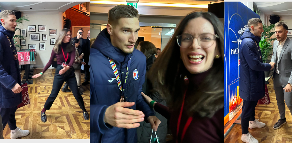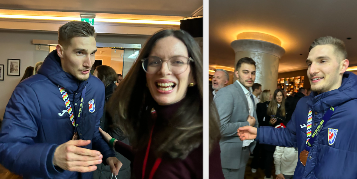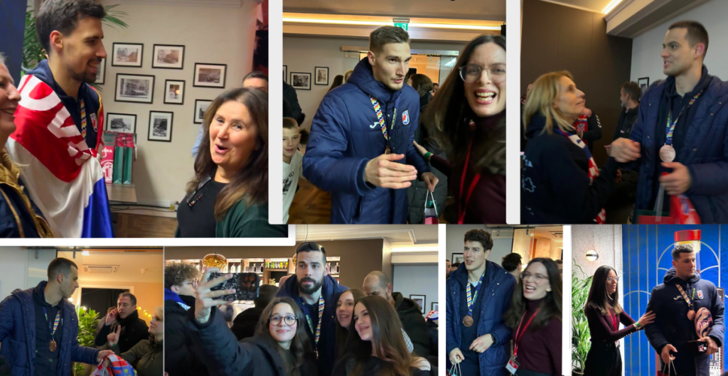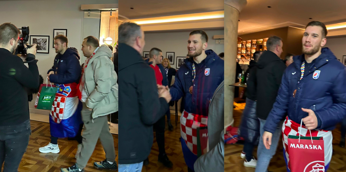 Ovo je trenutak kad se u Gradskoj kavani ukazao Dominik Kuzmanović, unatoč virozi zbog koje je propustio polufinale Kuzma se oporavio i s medaljom oko vrata izazvao euforiju kod hostese