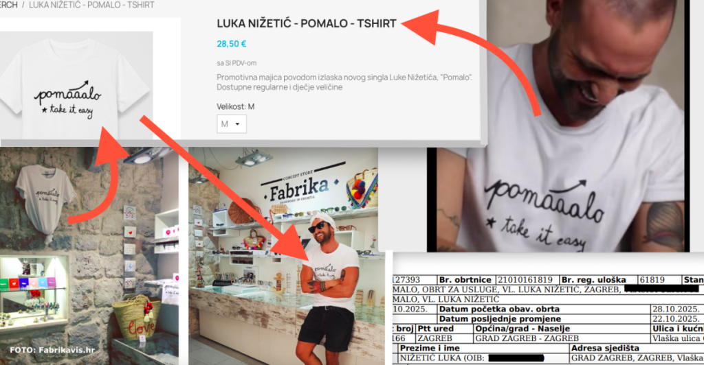 U Zagrebu je 28. listopada 2025. popularni pjevač Luka Nižetić u svom stanu osnovao obrt znakovita imena. Naime, Luka je taj obrt za usluge nazvao imenom svog prošlogodišnjeg singla koji polako postaje hit, dakle nazvao ga je Pomalo. Sjedište Lukinog obrta je u samom centru hrvatske metropole, u 2-sobnom stanu koji je Nižetić kupio prije nekoliko godina. Inače, pjevač ima stalnu adresu na Visu, točnije na samoj komiškoj rivi. Poznato je kako Luka dulje od desetljeća uspješno brodi ugostiteljskim biznisom na Visu. Tamo je suvlasnik i direktor u čak 3 tvrtke. U sve tri mu je partnerica Ružica Gami iz Sesveta koja je ujedno, kao i Luka, i direktorica. Prvo je Luka u 30. travnja 2013. osnovao Tvornicu dobre zabave i to kao jedini osnivač i direktor. U toj je tvrtci Ružica Gami postala suvlasnica u svibnju 2018. godine.