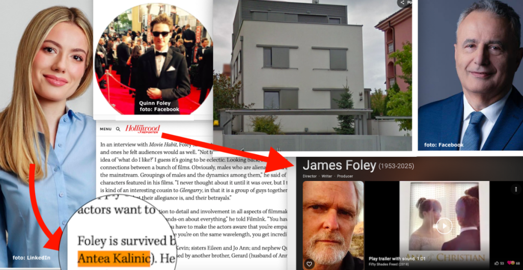 Tvrtka je registrirana s 2.500 eura temeljnog kapitala. Osnovna djelatnost joj je trgovna nekrentinama. Kad smo upisali ime tog, javnosti neznanog novog stanovnika Zagreba (naime Fley je prijavio adresu u vili Pavla Kalinića, pronašli smo Facebook poveznice s Anteom Kalinić, Pavletovom kćeri. Ispostavilo se da su oni zapravo zaručnici. Taj smo podatak pronašli na neočekivanom mjestu. U znamenitom američkom filmskom časopisu Variety a na kraju tog članka spmenuta je i Kalinićeva kći što možete vidjeti OVDJE.. Tamo je 5. svibnja 20025. objavljen dirljivi oproštaj od holivudske legende, redatelja Jamesa Foleya. U naslovu je istaknuto kako je u 71. umro redatelj filmova 'Glengary Glenn Rose' i 'Kuća od karata'. U članku se navodilo i kako je umro nakon jednogodišnje borbe s rakom mozga. Inače, i brojni drugi američki i svjetski mediji posvetili su oproštajne članke tom slavnom redatelju pa tako i Holyywood Reporter.U ti se člancima navodilo i sljedeće: 'Foley je radio sa zvijezdama uključujući Seana Penna, Madonnu, Ala Pacina i Halle Berry, a specijalizirao se za atmosferom natopljene priče s naglaskom na noir.Njegov prvi dugometražni film bio je glazbeno-romantična drama "Reckless" iz 1984., s Daryl Hannah i Aidanom Quinnom u glavnim ulogama. Foley je nakon toga snimio "At Close Range", s Pennom i Christopherom Walkenom u glavnim ulogama u neo-noiru koji je uključivao Madonninu pjesmu "Live to Tell".