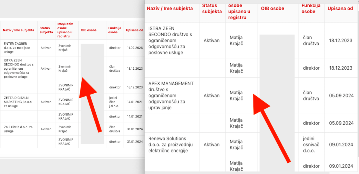 No, spomenuti Kukolja osnovao je i tvrtku Istra Zeen koja je uknjižena na susjednu vilu do te čije su gazde Krajačevi sinovi preko tvrtke koju su preuzeli od Kukolja. Naime, 18. prosinca 2023. Krajačevi sinovi upisali su se kao vlasnici tvrtke Istra Zeen Secondo pa su samim tim upisani i kao vlasnici vile Lovor u Istri. Direktor u toj tvrtci je Matija Krajač. Prema zadnjem izvješću koje je potpisao i predao Financijskoj agenciji tvrtka je imala gubitak od 584,75 € u 2024. g. Zanimljivo je kako je vrijednost dugotrajne imovine upisana za tu godinu s iznosom od 229.670,99 eura što bi bila vrijednost vile. No, kad se pogledaju slike vile, enterijera i eksterijere na stranici gdje se iznajmljuje stječe se dojam kako ta vila ima puno veću tržišnu vrijednost.