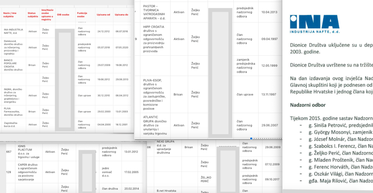 Zanimljivo je kako je tu ispušteno da je Perić bio član NO-a Ine i to u premijerskom mandatu Zorana Milanovića. Tad je Milanović na čelo Ine postavio svog pajdu, prijatelja Sinišu Petrovića koji je godinama nadzornik i kod Emila Tedeschija. Jutarnji je tada pisao kako je Milanović kao premijer ponudio Periću mjesto predsjednika uprave HŽ Holdinga. U NO-u Ine Perić je bio 4 godine, od prosinca 2012. do srpnja 2016. g. Istaknimo kako je 2012., u vrijeme kada je Zoran Milanović bio premijer, Perić spominjan kao izbor za vrh Ine s ciljem smirivanja odnosa na relaciji Vlada - MOL. Zakovito je dakle ne samo da je Perić u svom službenom predstavljanju na web stranici Oaklinks Croatia ispustio Inu već i čitav niz drugih tvrtki u kojima je bio u samom vrhu. Tako je izostavljen podatak da je bio član NO-a Nexe-a od 2004. do 2009. Potom je od 2009. do 2017. bio član NO-a ali i predsjednik NO-a našičke Nexe grupe u vlasništvu Ivana Ergovića, tajkuna i vlasnika rukometnog kluba Nexe.