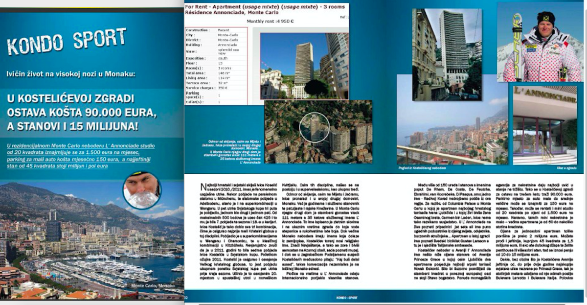 No, brat i sestra Kostelić sigurno su zaslužili komad stambenog raja na zemlju nakon godina teških odricanja i uspona na skijaški tron. Kad je Janica 2006. primila sportsku verziju Oscara, nagradu Laureus, u Monte Carlu, i dok je nasmijana pozirala s pobjedničkim kipićem, zacijelo su se dani kad je obitelj Kostelić bila na kruhu, slanini i luku, činili kao neki davni prošli život. “Per aspera ad astra” vrijedi za Kosteliće od Monaka dok se šeću Azurnom rivom, promatraju marine s najskupljim jahtama te kroče najuređenijim svjetskim parkovima gradića s najboljim casinima i draguljarnicama na svijetu. Na primjeru Janice i Ivice, na sreću, vidimo da se do središta svjetskog luksuza može doći ne samo “preko leševa” i tranzicijske otimačine nego i odricanjem, spartanskim treniranjem uz minimalnu dozu sreće.'.
