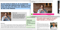 - Na web stranici novilist.hr (link i screen u prilogu) objavljen je primamljujući oglas Linker medie s naslovom: 'Pronašli su način da dobiju dodatnih 5.000 eura. Pogledajte metodu koja će omogućiti...'. Taj oglas vodi na prevarantsku web stranicu academyeduofferonline.com - link - na kojoj se nalazi članak pod naslovom: 'MLADI GENIJE SMISLIO JE ALGORITAM KOJI SVAKOM OMOGUĆAVA DOBITI 10 510 EURA OD VALUTE STELLAR'. ISKORISTILO JE VEĆ 2700 HRVATA'. Članak je ilustriran slikom tobožnjeg Dalibora Jokića. Ista lažna priča i isti lažni lik prethodno su objavljivani i na drugoj fantomskoj web adresi economistguide.com - link samo je iznos tobožnjeg profita izražen u kunama. Već jednostavnom pretragom preko Google Lens vidljivo je kako se radi o kupljenoj agencijskoj slici te da se ne radi ni o kakvom Daliboru Jokiću već o slici u ponudi agencije Fizkes u kategoriji 'milenijski biznismen koji radi od doma' - link 1, link 2. S tim u svezi zanima nas vaš komentar obmanjujućeg oglasa koji plasirate?